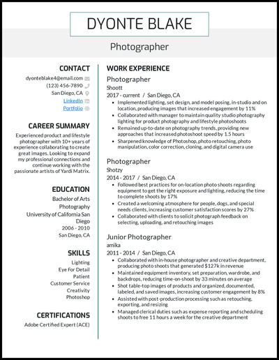 Freelance Photographer Resume Examples And Templates That Got Jobs In 2022 Zippia